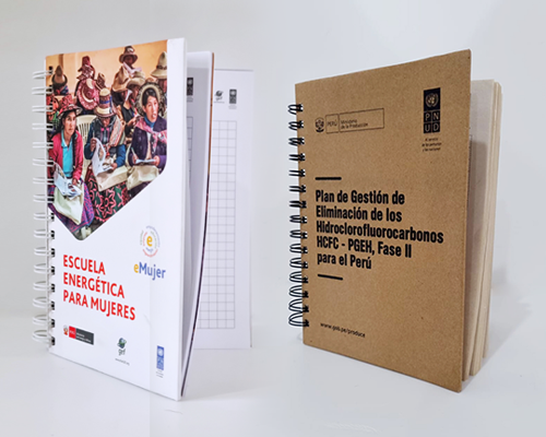 Tamaño 21 x 15 cm, tapa en biocuero PU. Interiores en  papel avena 01 color.